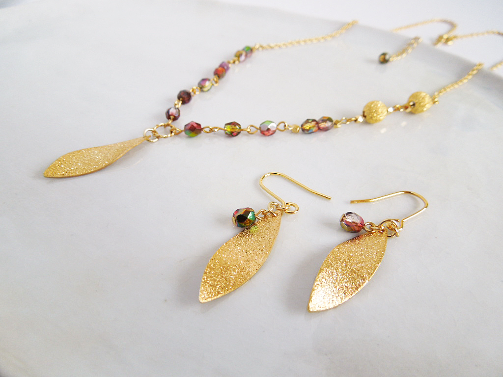 - 2015.08.15 【Leaf series】チェコビーズとリーフのピアス