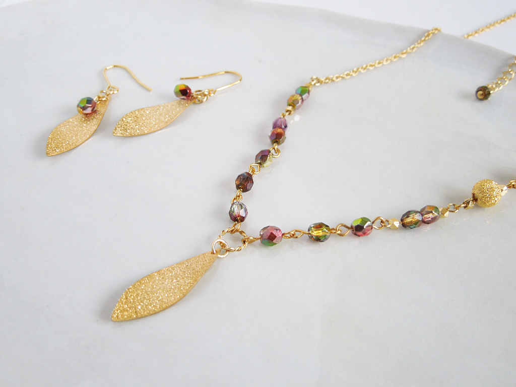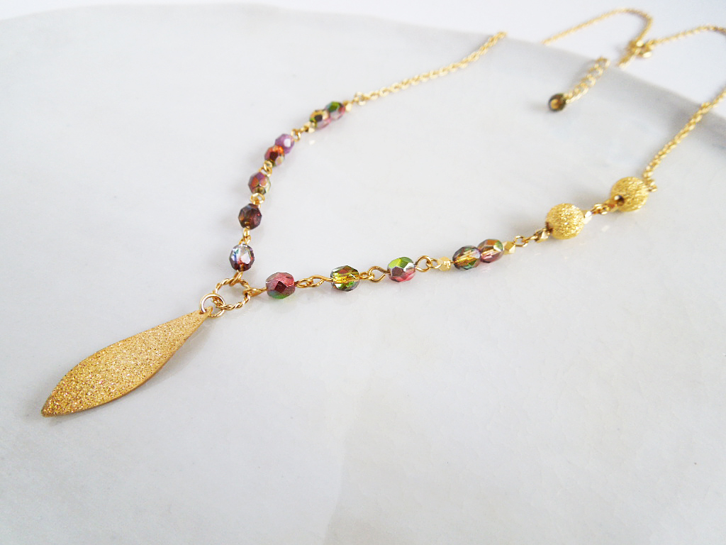 【Leaf series】チェコビーズとリーフのネックレスA