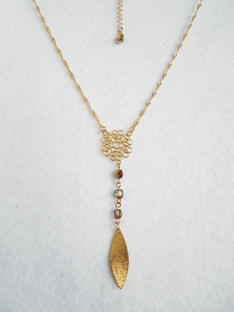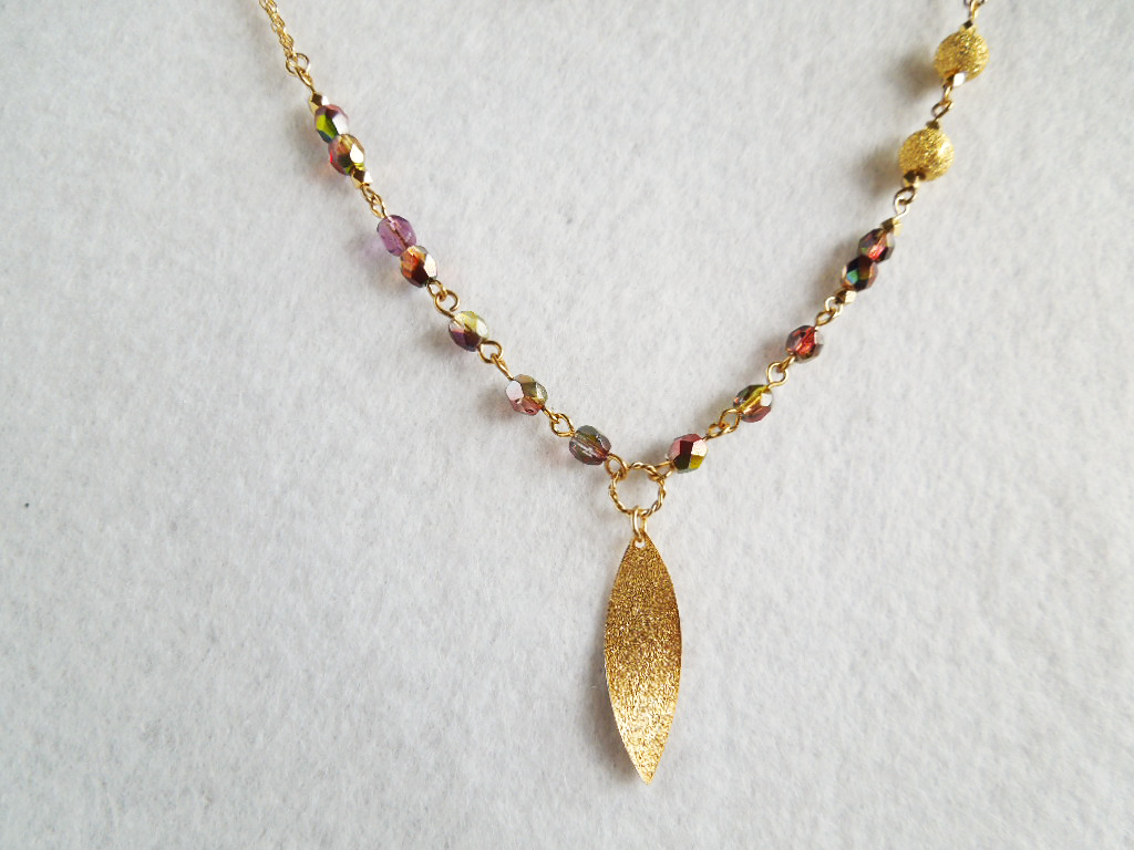 チェコビーズとリーフのネックレスです。