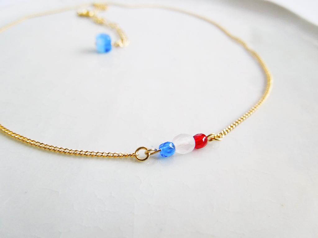 後姿に技あり!シンプルなトリコロールカラーのネックレス