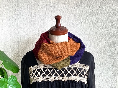キッズ用スヌード「海」の受注制作分を編み始めました。