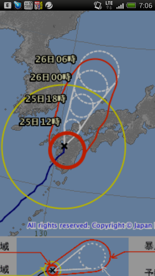現在、台風は中心近くにあるらしく、風がおさまった。