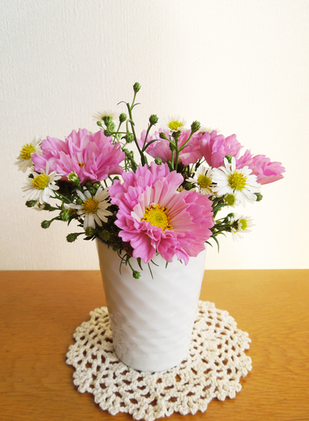 お花屋さんで八重のコスモスをみつけました。